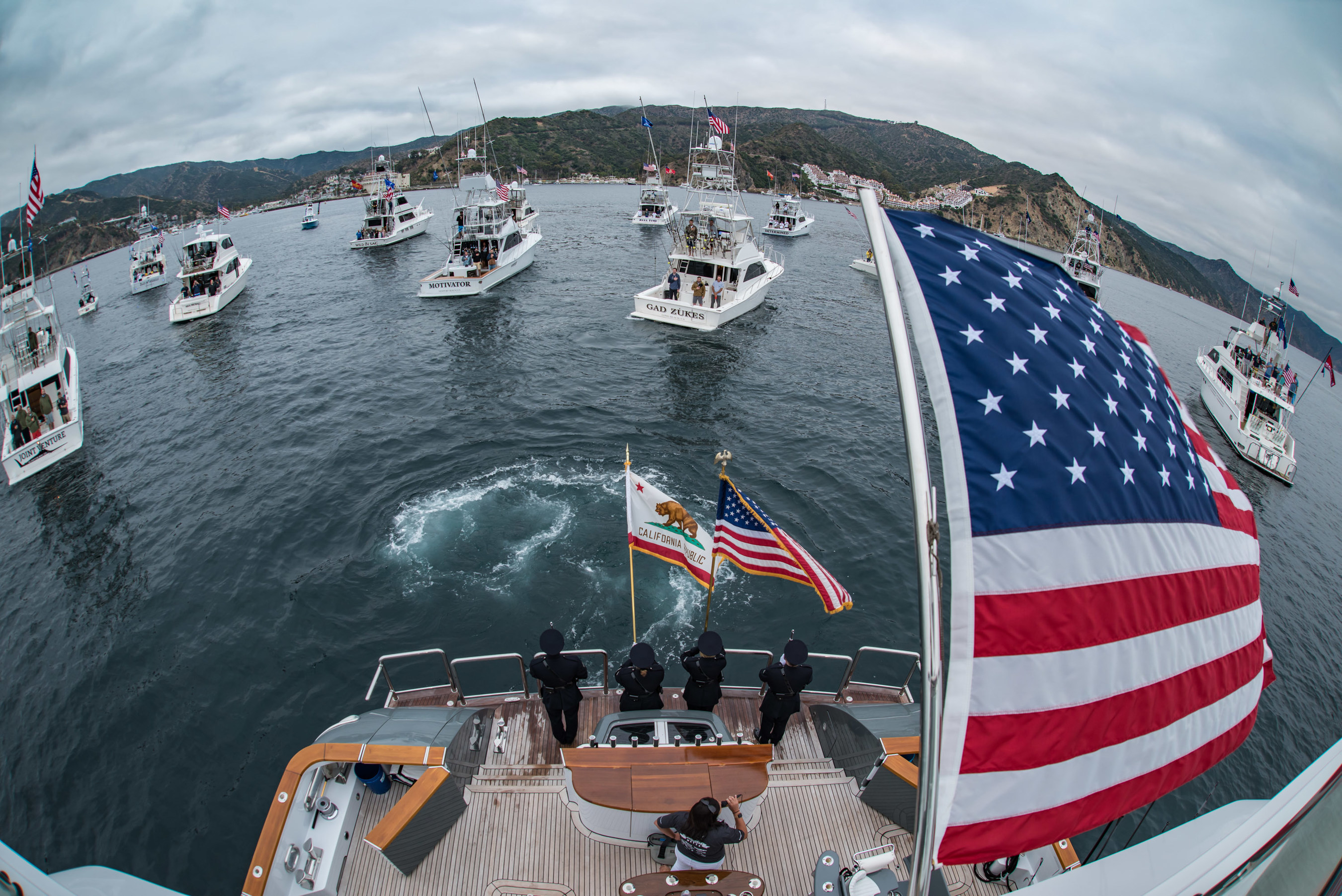 On Saturday morning, the WHOW Tournament officially launched with a presentation of the American flag by the LAPD Color Guard, a beautiful rendition of the National Anthem by loanDepot's own Chief Accounting Officer, Nicole Carrillo, and a yacht parade out of Avalon as the veterans and their teams began their WHOW Tournament experience in earnest.