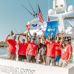 This year's event kicked off on Thurs., Oct. 1st with a first-ever Boat Parade through Newport Harbor. The participating veterans boarded their assigned yachts from Hsieh's home, which then assembled in the Newport Turning Basin in preparation for the singing of the National Anthem by country artist Tyler Rich. Following the performance, Rich, together with a variety of Tournament participants, led the parade aboard the yacht, Cielo Mare. The Tournament's 12 participating yachts fell in behind and were joined by more than 60 local boats for a joyous and entertaining loop through Newport Harbor. The Tournament boats then proceeded out to sea to begin their two-day fishing adventure off the pristine waters of Santa Catalina Island, an area considered to be the birthplace of modern sportfishing.